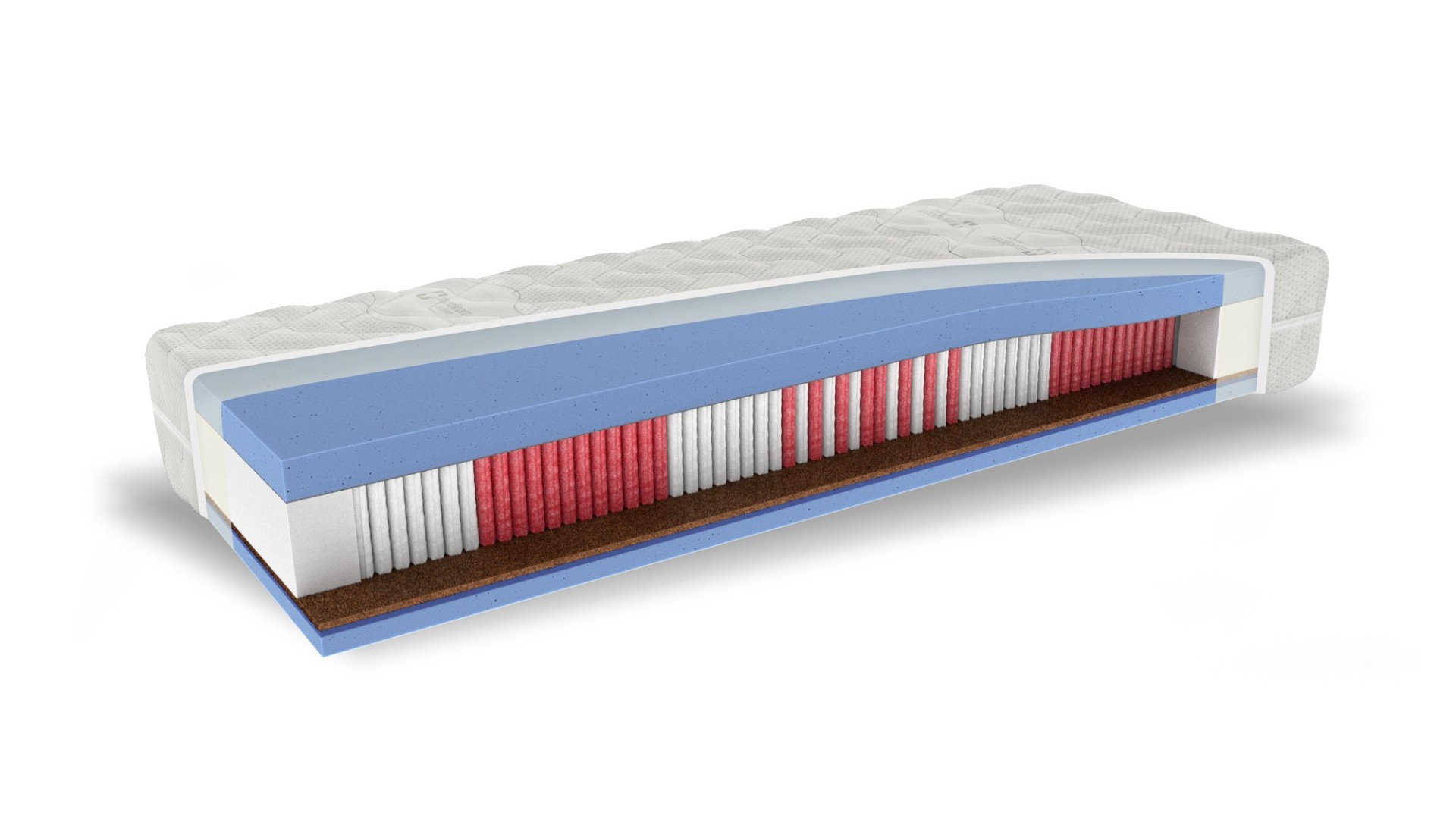 ThermoFresh - hustota 60 kg/m3 LISOVANÁ BAVLNA – CHRÁNIČ PRUŽINY PUR BOČNÍKY - hustota 35 kg/m³ PRUŽINA SUPER MICROPOCKET S2000 7FYZIO - 1000 pružiniek na m² GUMOKOKOS - hustota 80 kg/m³ Pena SENSIO, KOMFORTNÁ PENA, hustota 40 kg/m³ ThermoFresh - hustota 60 kg/m³ ELASTICKÁ TEXTÍLIA NA OCHRANU JADRA SNÍMATEĽNÝ A PRACÍ POŤAH