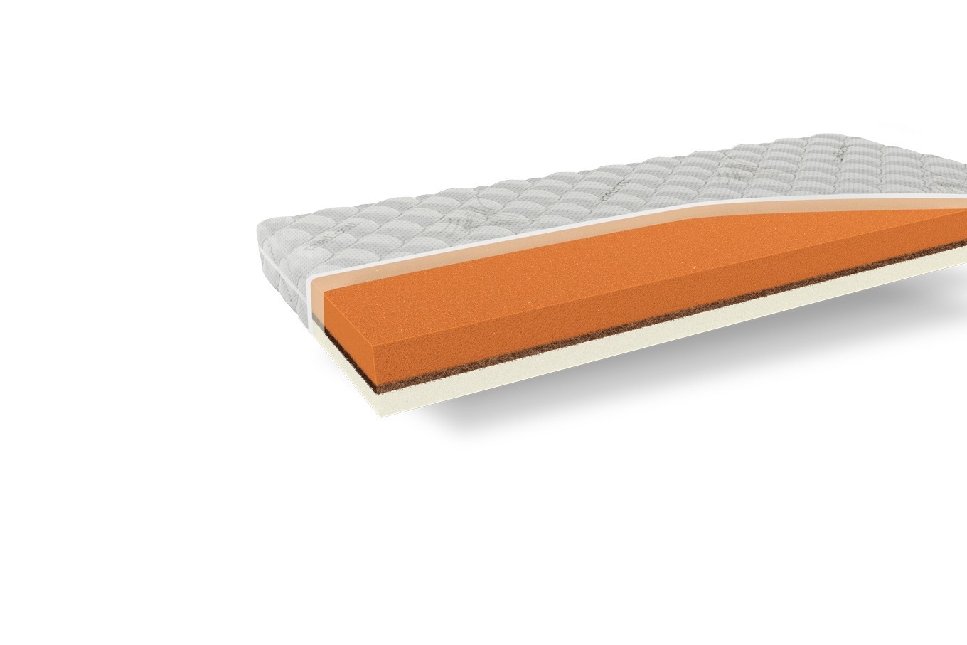 Luxusný matrac pre bábätká je navrhnutý z technologicky najlepších materiálov pre zdravý a bezpečný spánok dieťaťa. Stred matraca tvorí pevná a zároveň vzdušná vrstva platne zo 100 % prírodného kokosového vlákna, ktorá zabezpečuje správnu oporu chrbtice a podporuje jej zdravý vývoj. Na jednej strane sa nachádza pena Therapy s obsahom mikročastíc medi, ktorá zvyšuje antibakteriálnu ochranu a zároveň poskytuje pamäťový efekt pre vyšší komfort. Druhú stranu tvorí latexová pena Premium, známa svojou elasticitou, priedušnosťou a schopnosťou prispôsobiť sa telu.
