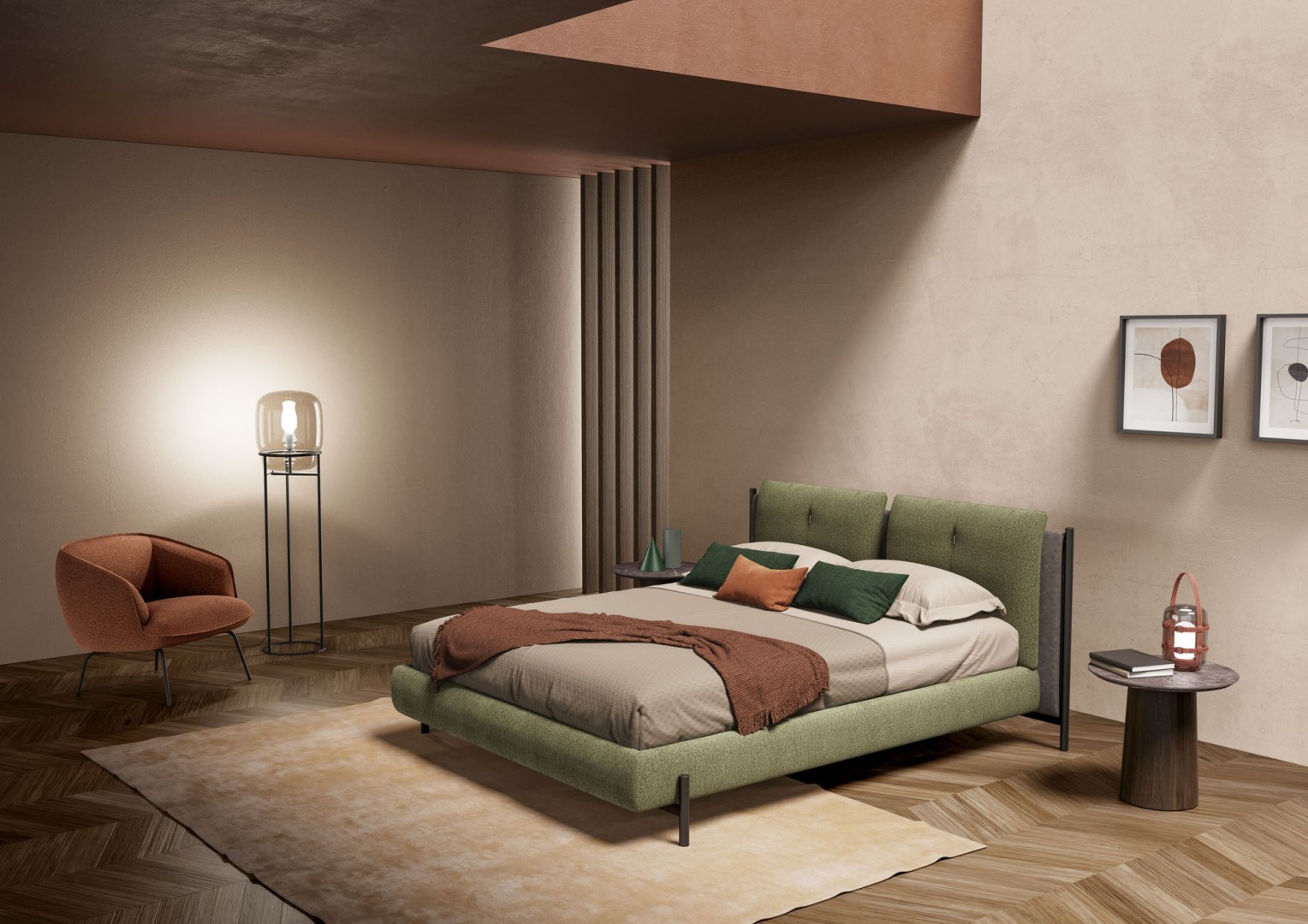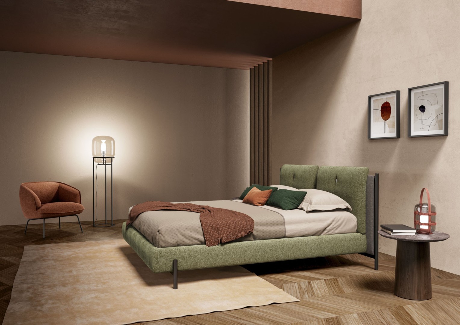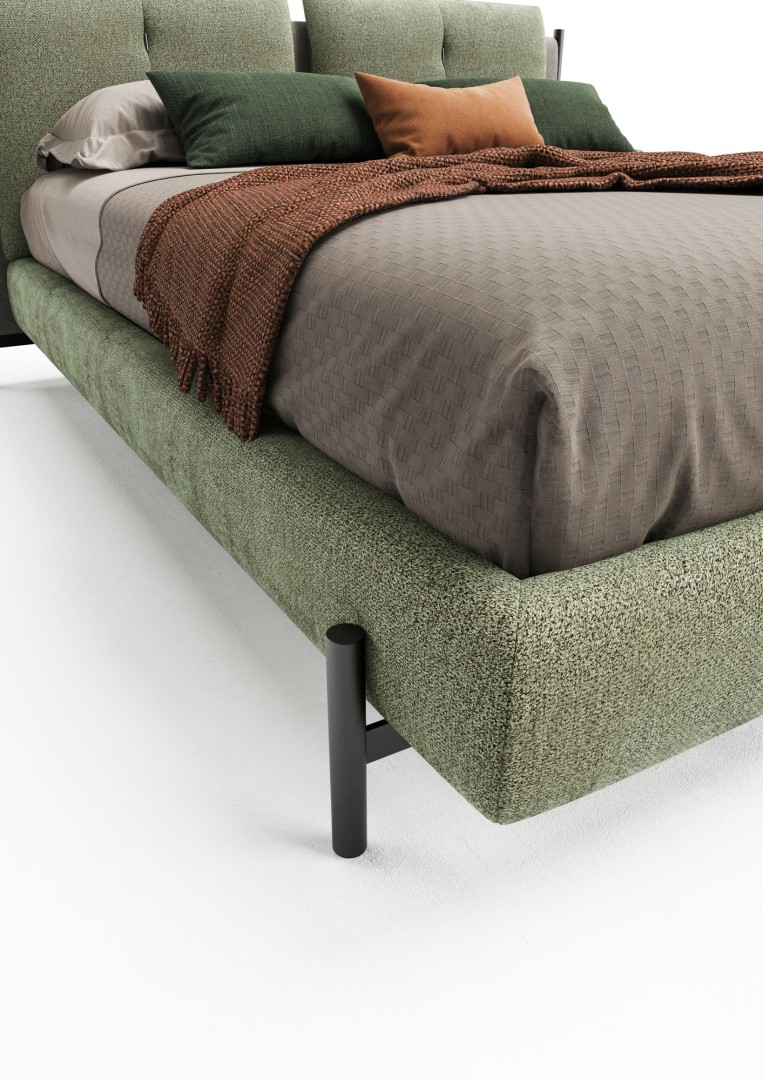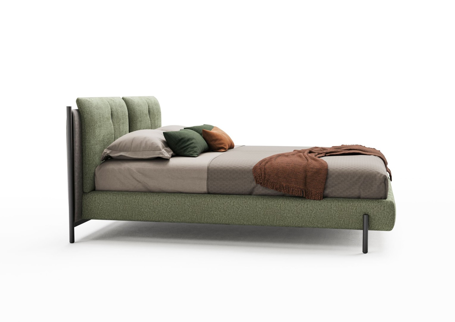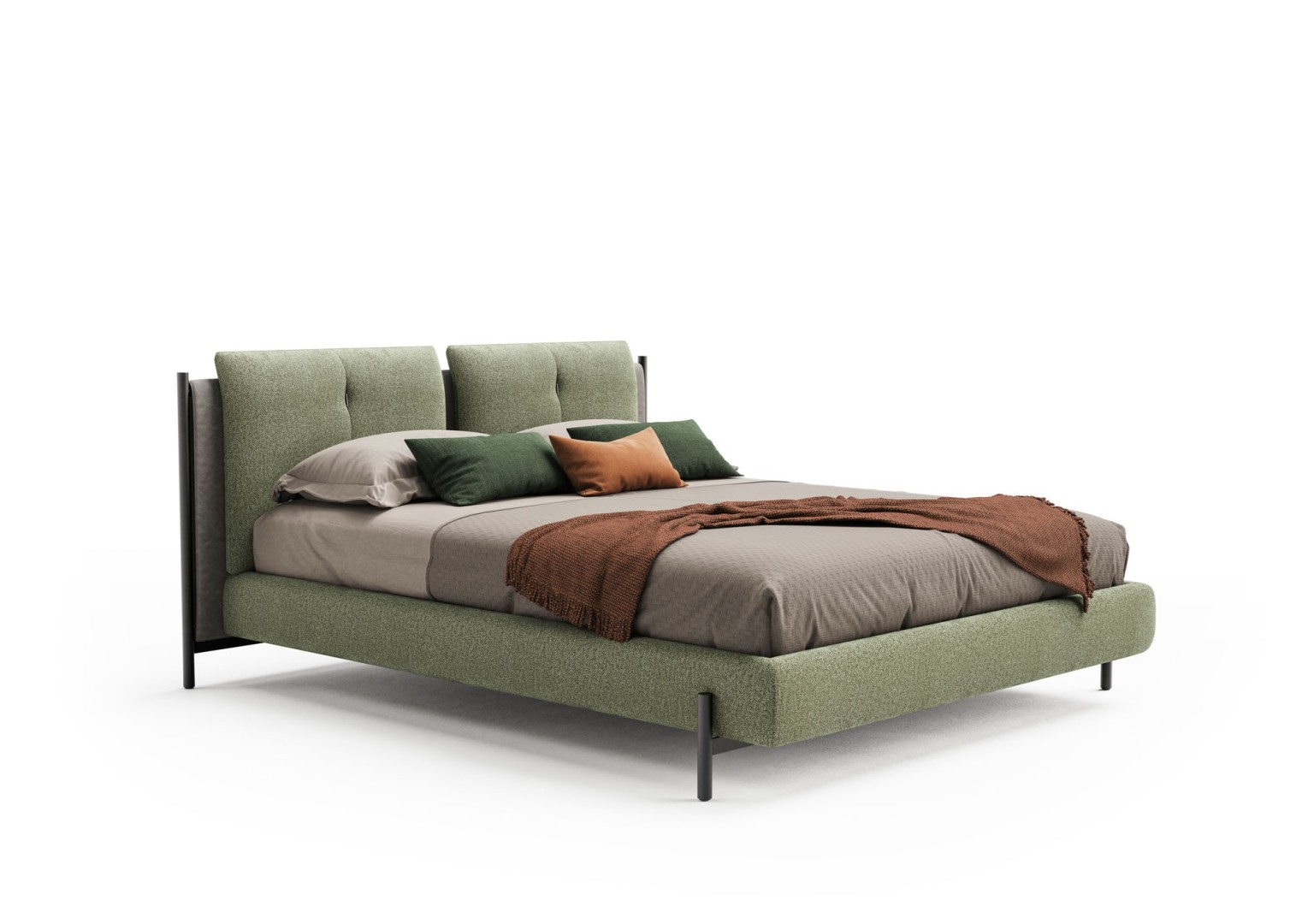 Daniel – pevnosť a jemnosť v dokonalej harmónii. Posteľ Daniel od talianskej značky Novaluna kombinuje pevné, tvrdé tvary s jemnosťou a mäkkosťou čalúnenia. Pevné kovové prvky, ktoré zdobia boky čela, dodávajú dizajnu pocit solídnosti a rozhodnosti. Rovnaký pevný a stabilný dojem vyvolávajú aj nohy postele. Naopak, všetky čalúnené časti pôsobia mäkko a útulne. Táto posteľ je miestom, kde sa snúbi vyvážený dizajn, komfort a praktický úložný priestor. Kovové časti postele môžu vhodne zapadnúť do dizajnu vašej spálne.