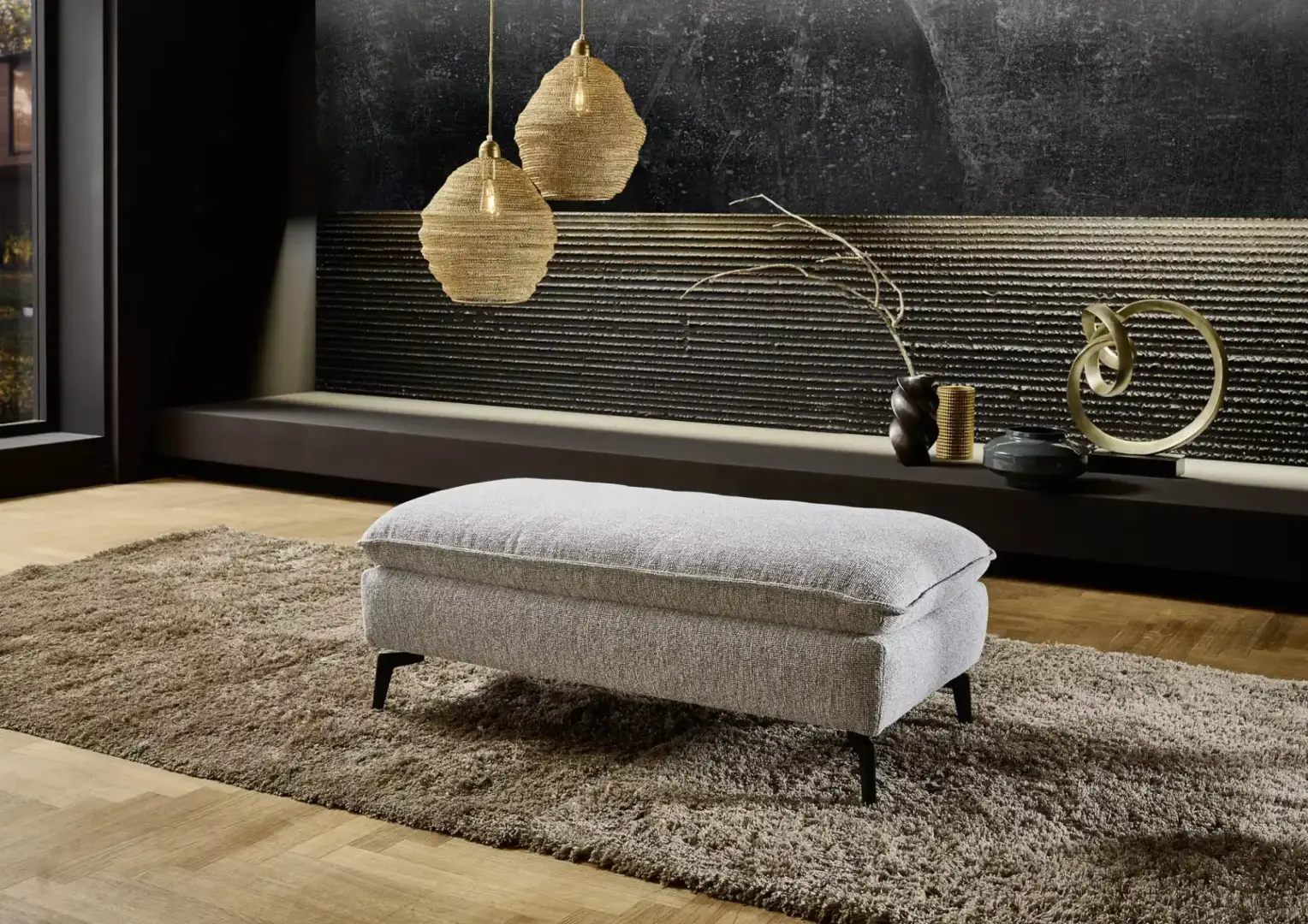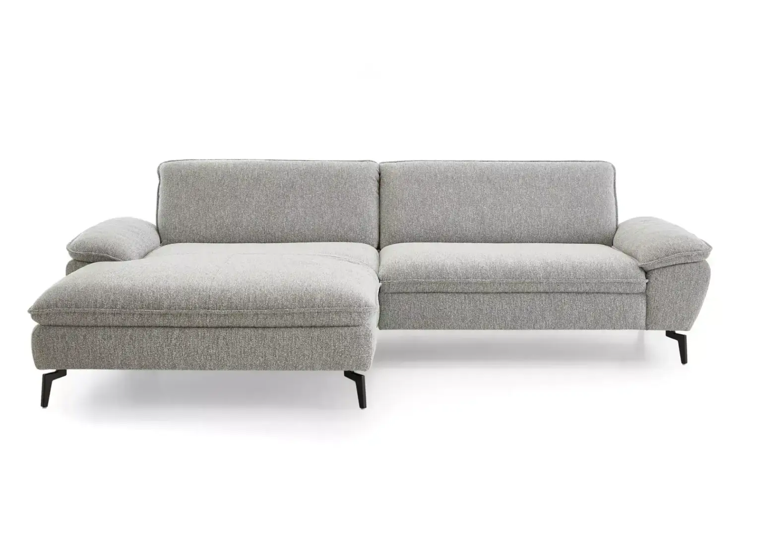 Rohová sedacia súprava tvaru L v látkovom prevedení. Skladá sa z 1,5 sedu a kanapy na ležanie. Sedenie penové (studená pena), výška sedu 46/48 cm, nohy kovové čierne.