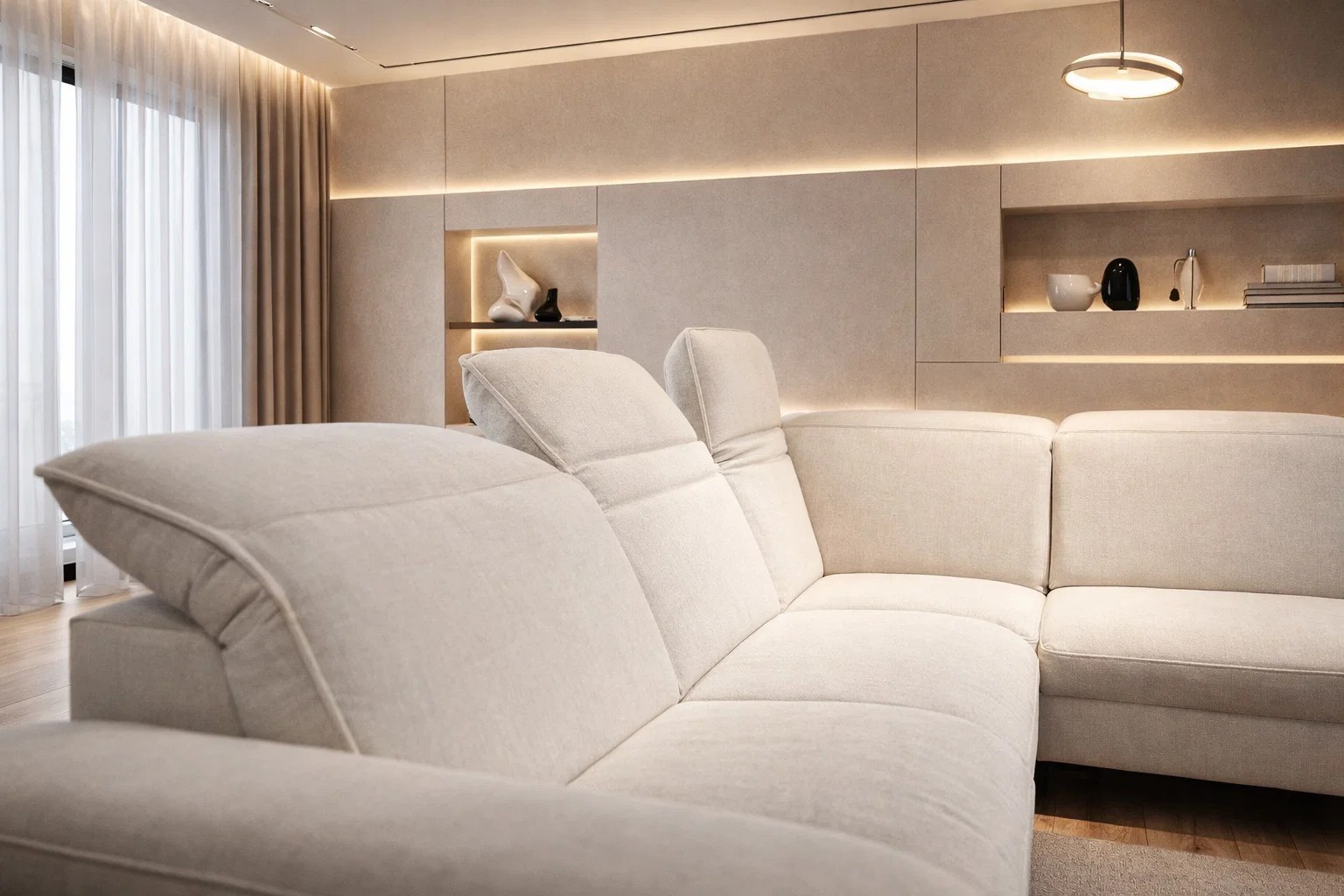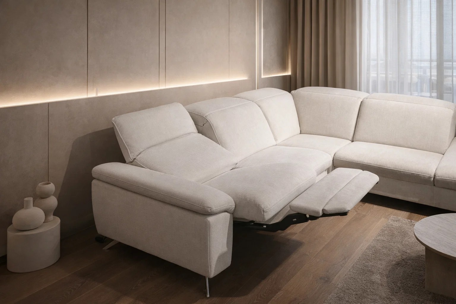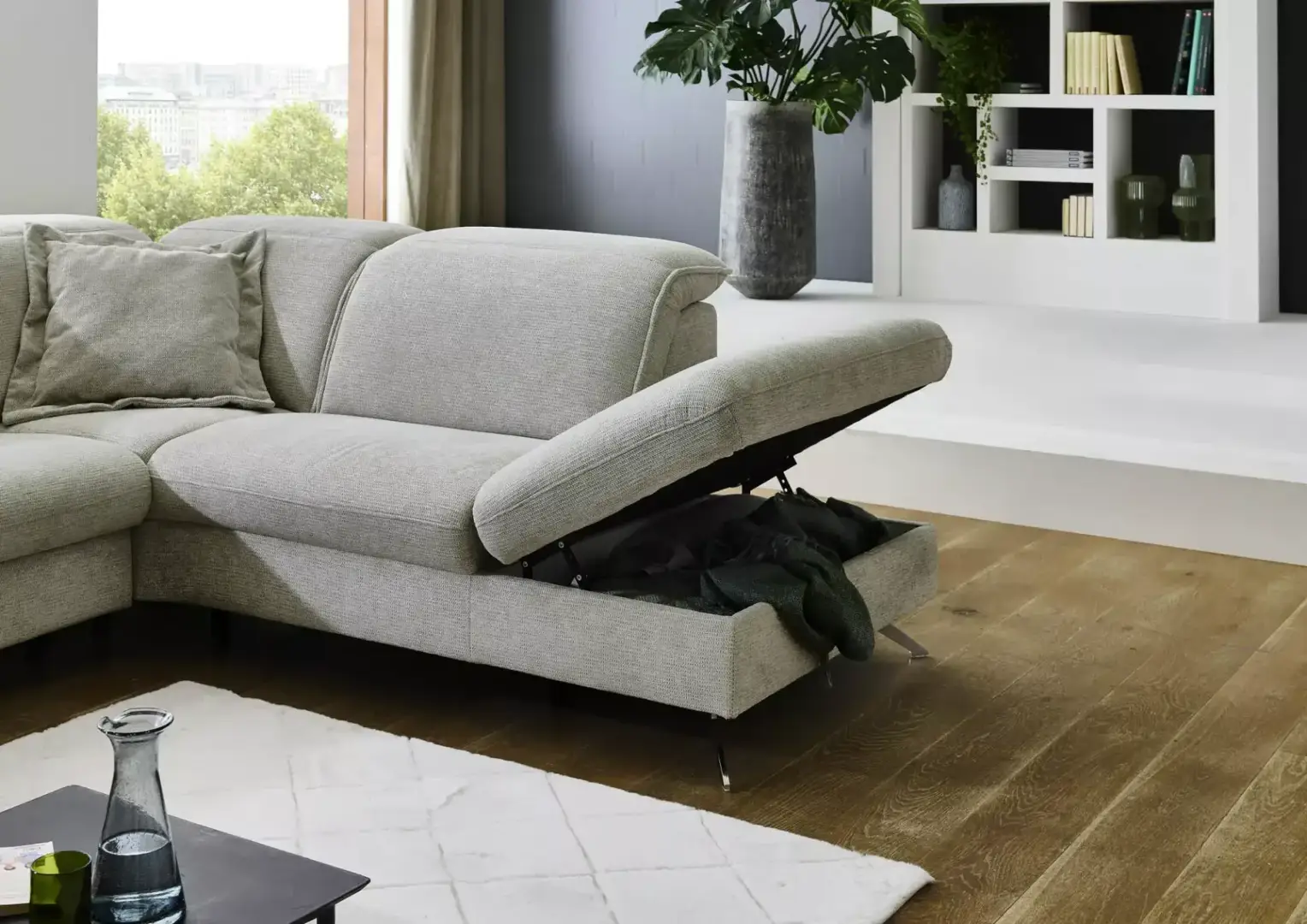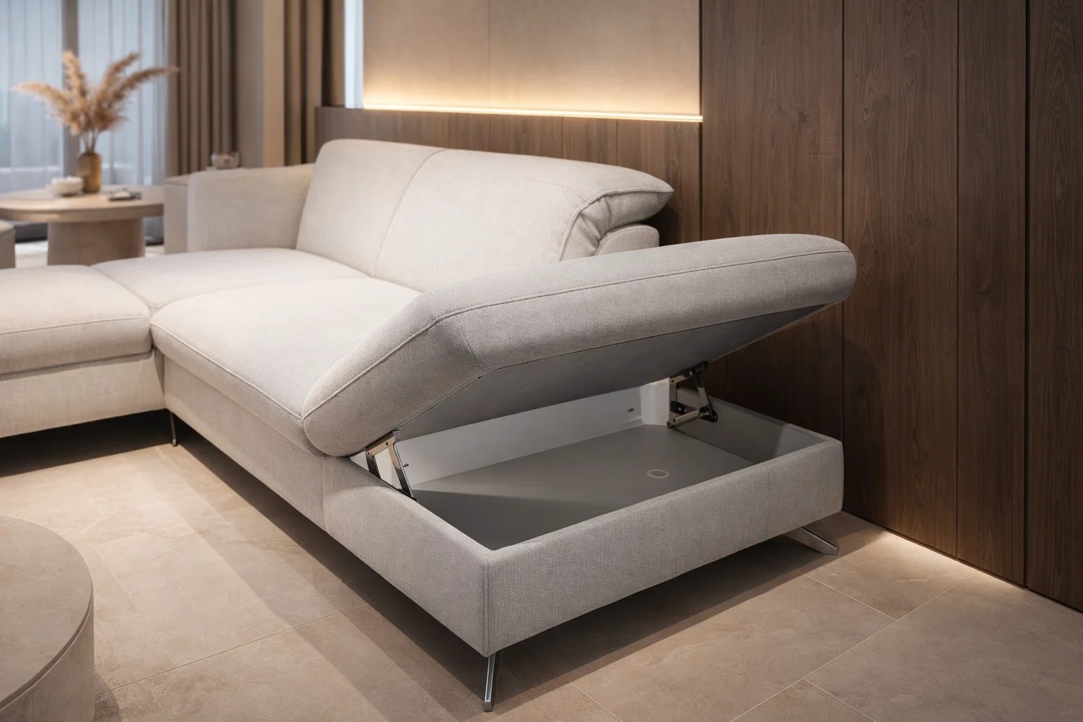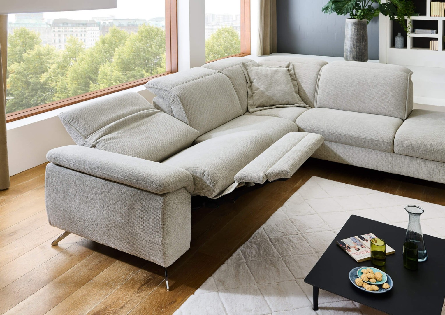 Sedačka na šikmých kovových nožičkách je ideálna aj pre vyšších ľudí. Polohovateľné opierky zlepšia váš komfort pri sedení a zaguľatený okraj pod kolenami spríjemní celkový pocit pri každom posedení. Vďaka širokým možnostiam a ponuke dostupných funkcií si ju môžete vyskladať presne podľa svojich predstáv.