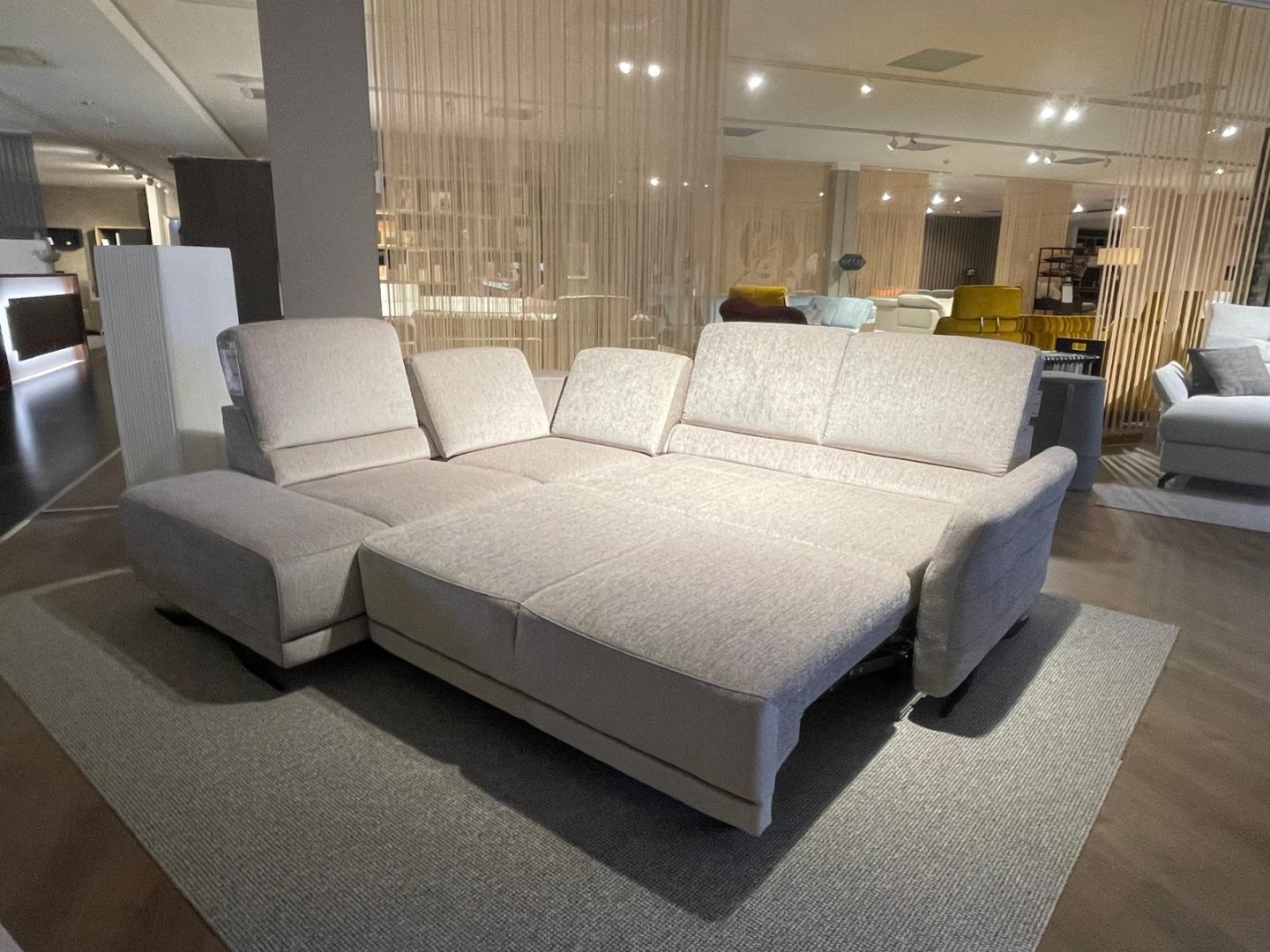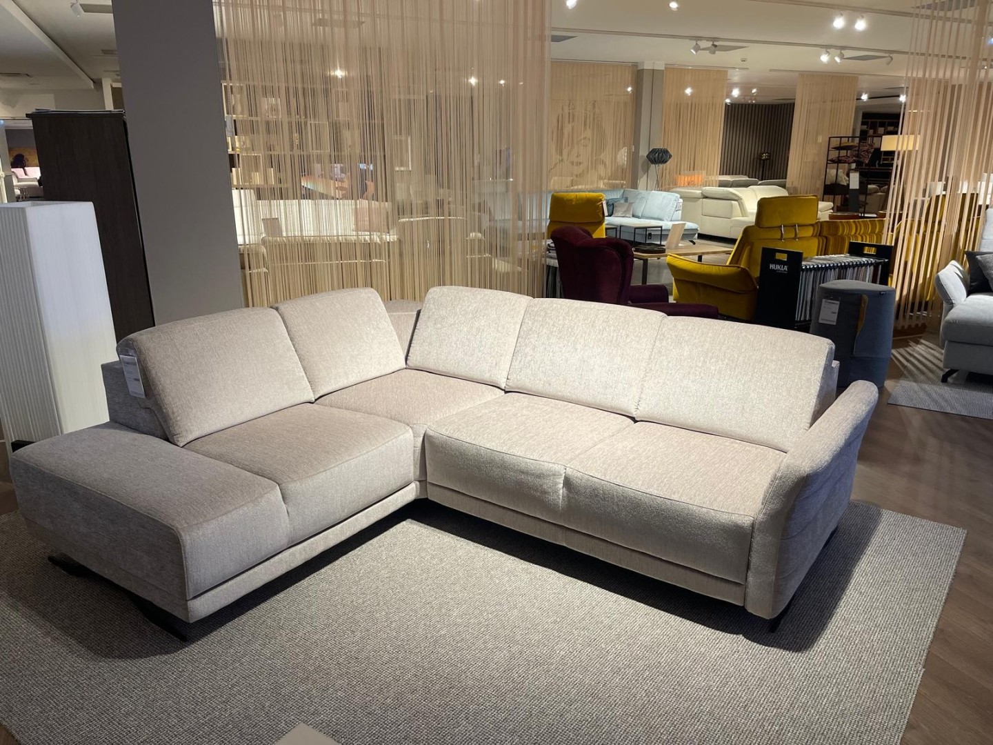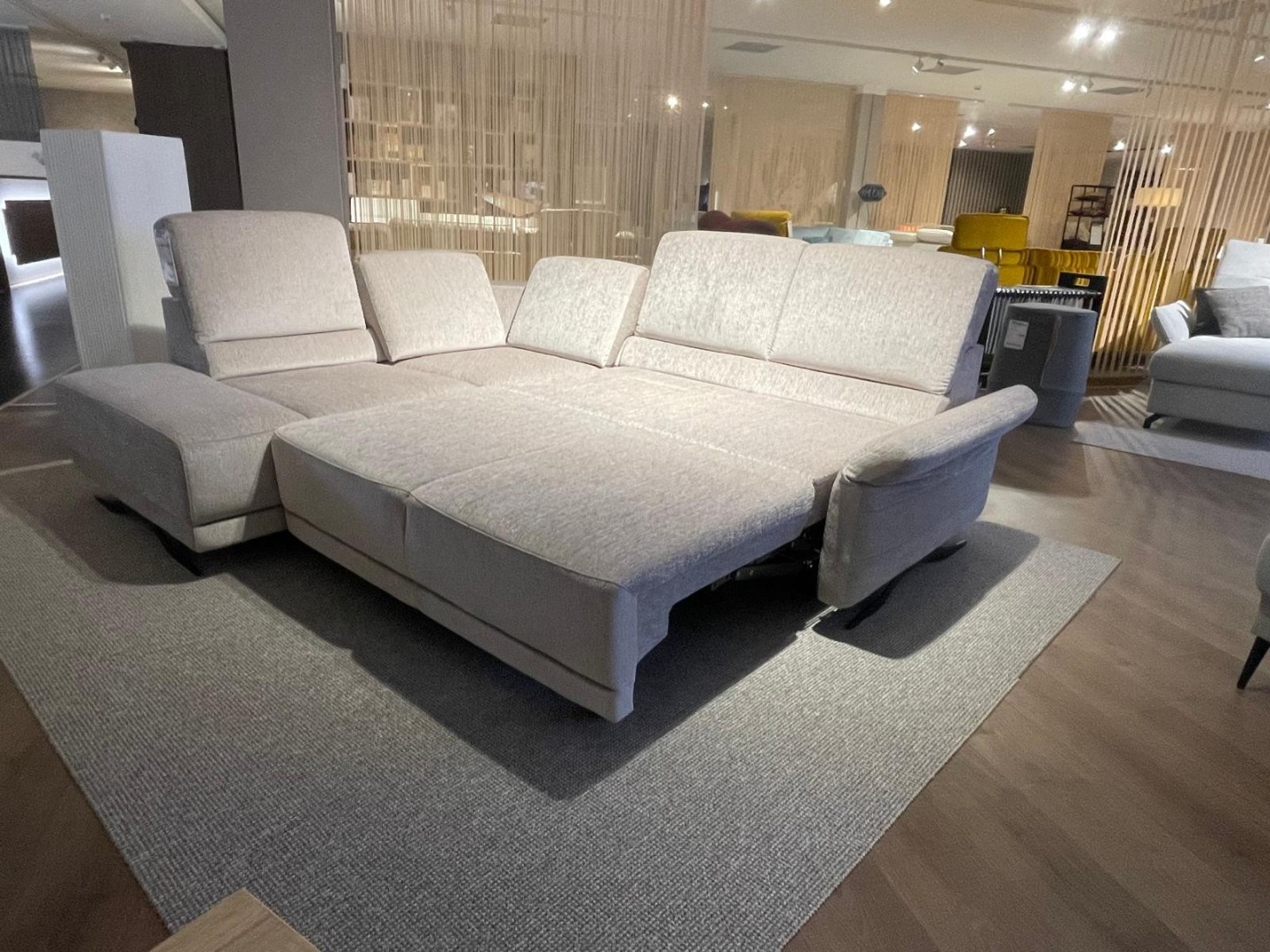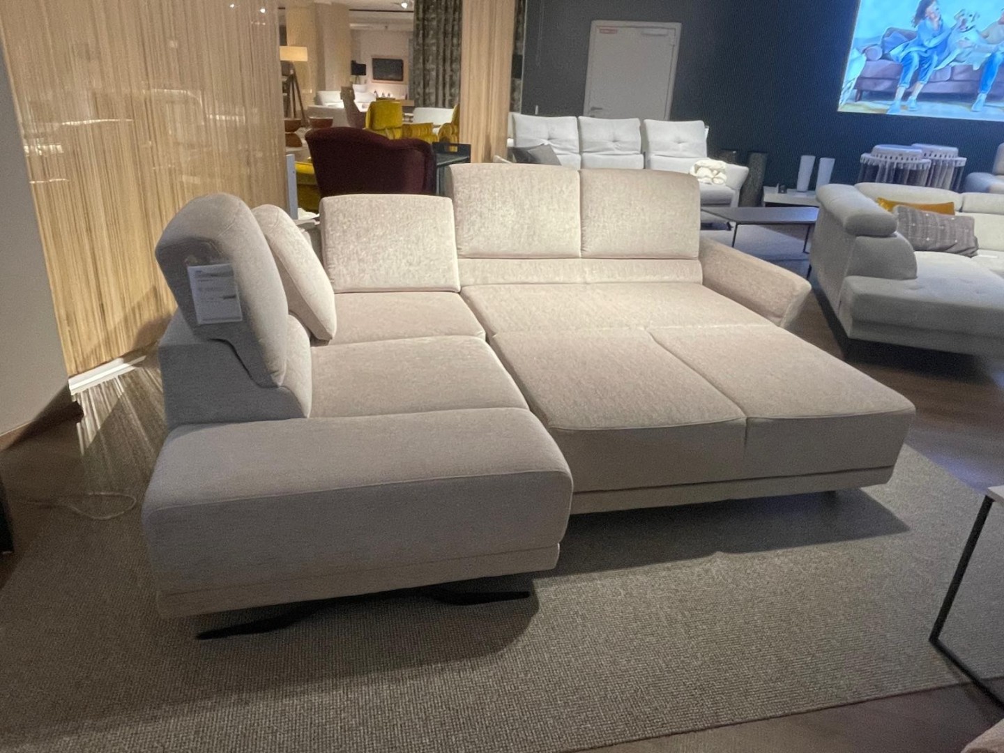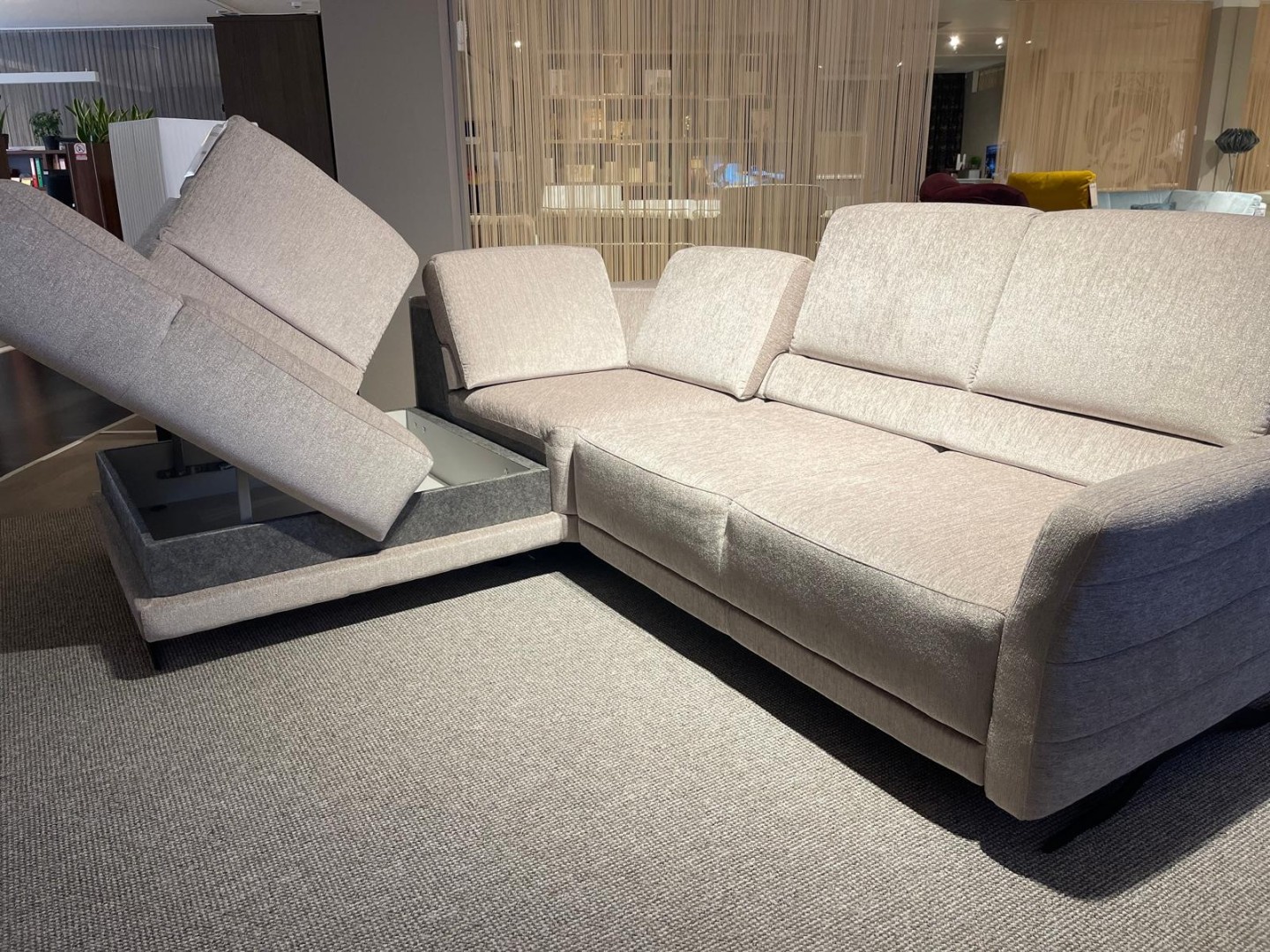 Rohová látková sedačka s praktickými funkciami: rozklad na lôžko, úložný priestor, polohovateľná podrúčka a výškovo nastaviteľné chrbtové opierky pre maximálny komfort pri sedení aj oddychu. V rohu menší odkladací priestor na drobnosti. Teraz vo výpredaji a ihneď k odberu.