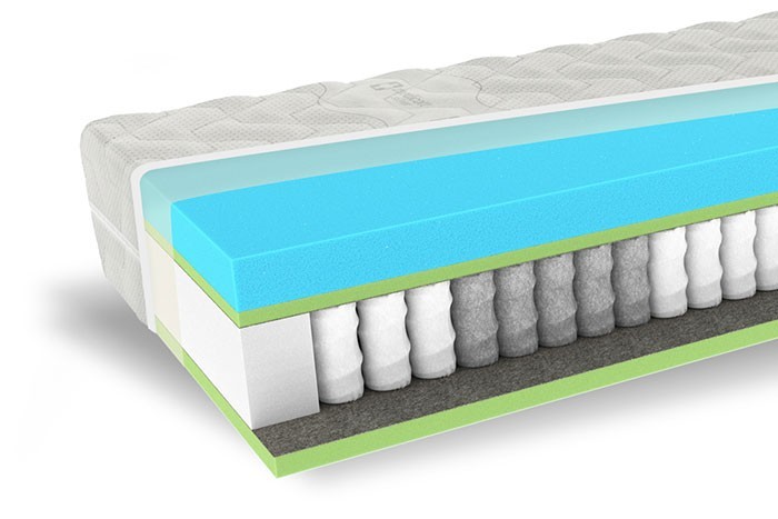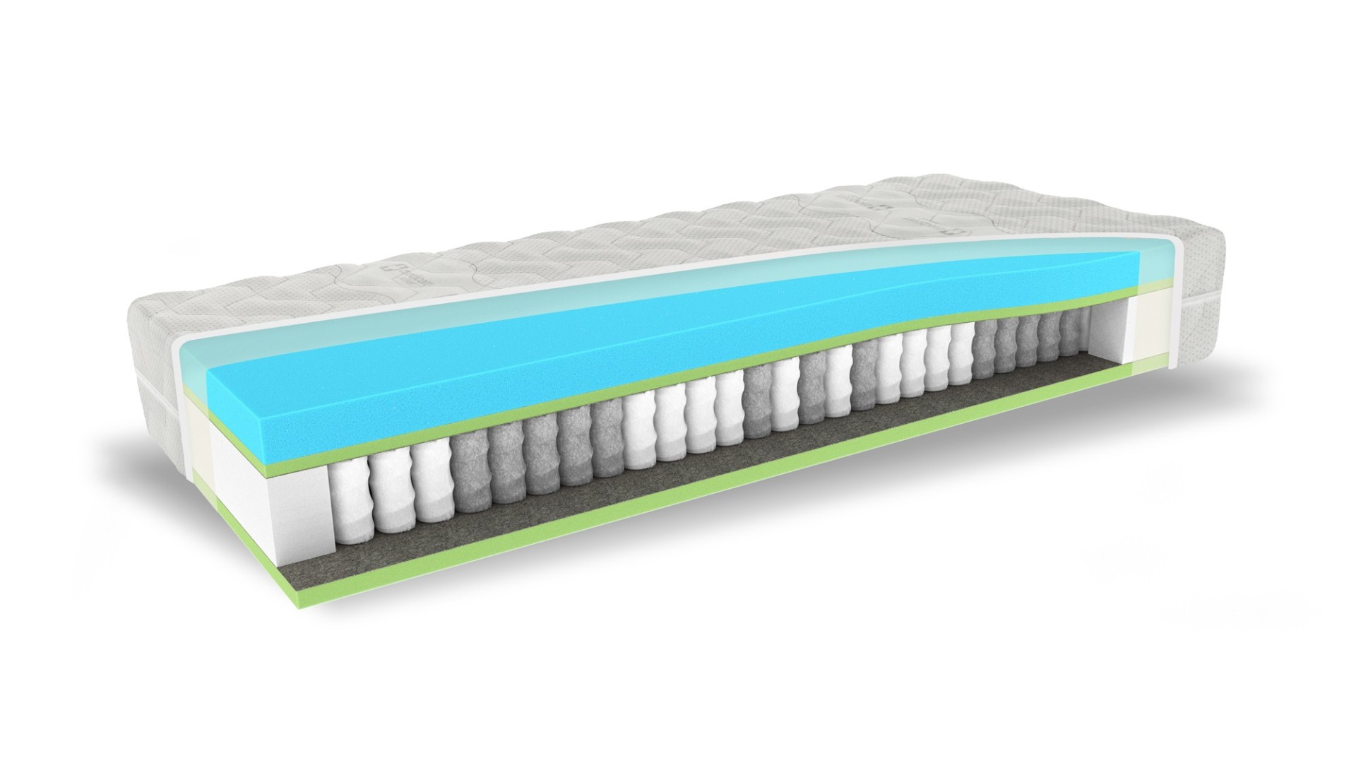 NATUR ORANGE (BIO HRNC pena), hustota 60 kg/m³ Pena SENSIO, KOMFORTNÁ PENA, hustota 40 kg/m³ LISOVANÁ BAVLNA, CHRÁNIČ PRUŽINY PUR BOČNÍKY - hustota 35 kg/m³ PRUŽINA PUNKTOFLEX S500 7FYZIO - 250 pružiniek na m² Pena SENSIO, KOMFORTNÁ PENA, hustota 40 kg/m³ ELASTICKÁ TEXTÍLIA NA OCHRANU JADRA SNÍMATEĽNÝ A PRACÍ POŤAH
