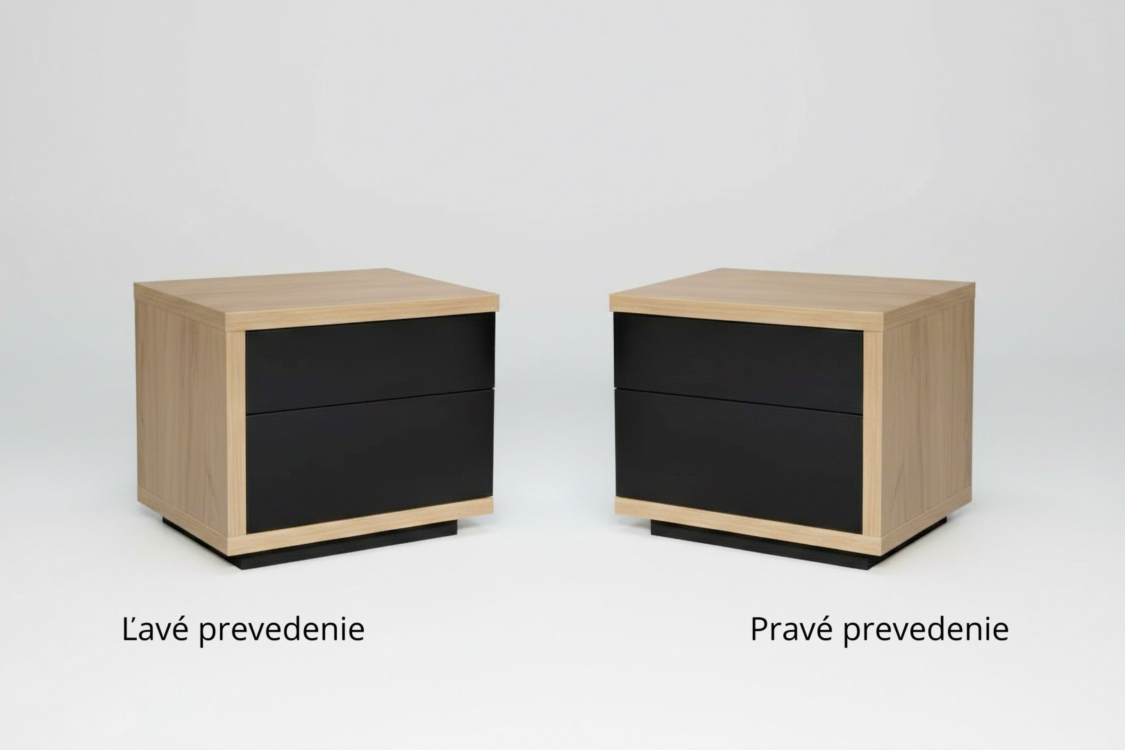 Nočný stolík dvojzásuvkový s push otváraním bez madiel. Slovenská výroba. Pravé/ Ľavé prevedenie.
