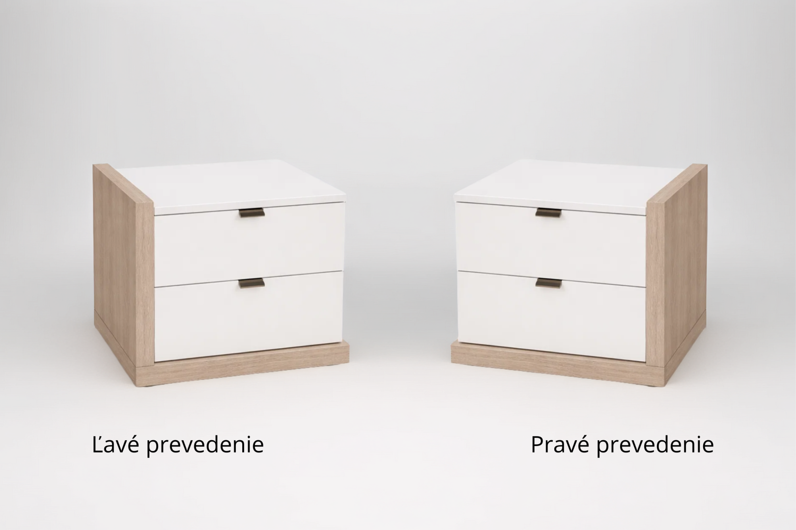 Dvojzásuvkový nočný stolík s tichým zatváraním. Moderný vzhľad. Slovenská výroba. Ľavé/ Pravé prevedenie.