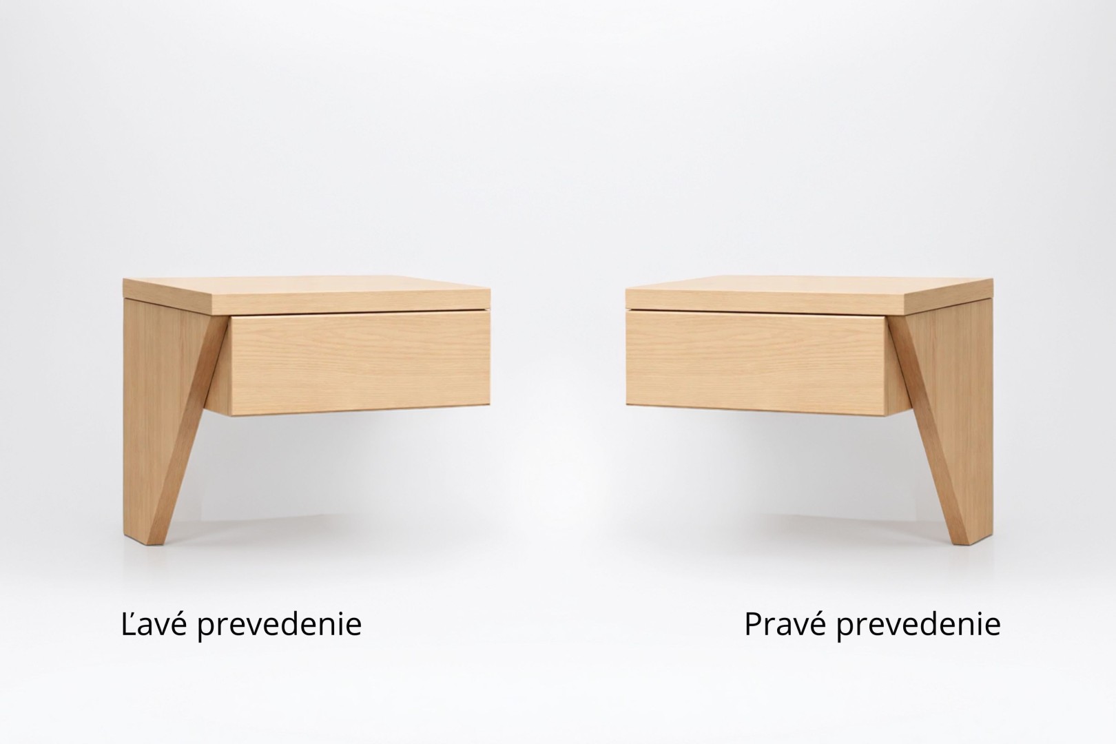 Nočný stolík s jednou zásuvkou s push otváraním, bez úchytiek. K dispozícii je výber z viacerých dekorov a stolík sa primontuje priamo k posteli. Slovenská výroba. Ľavé/Pravé prevedenie.