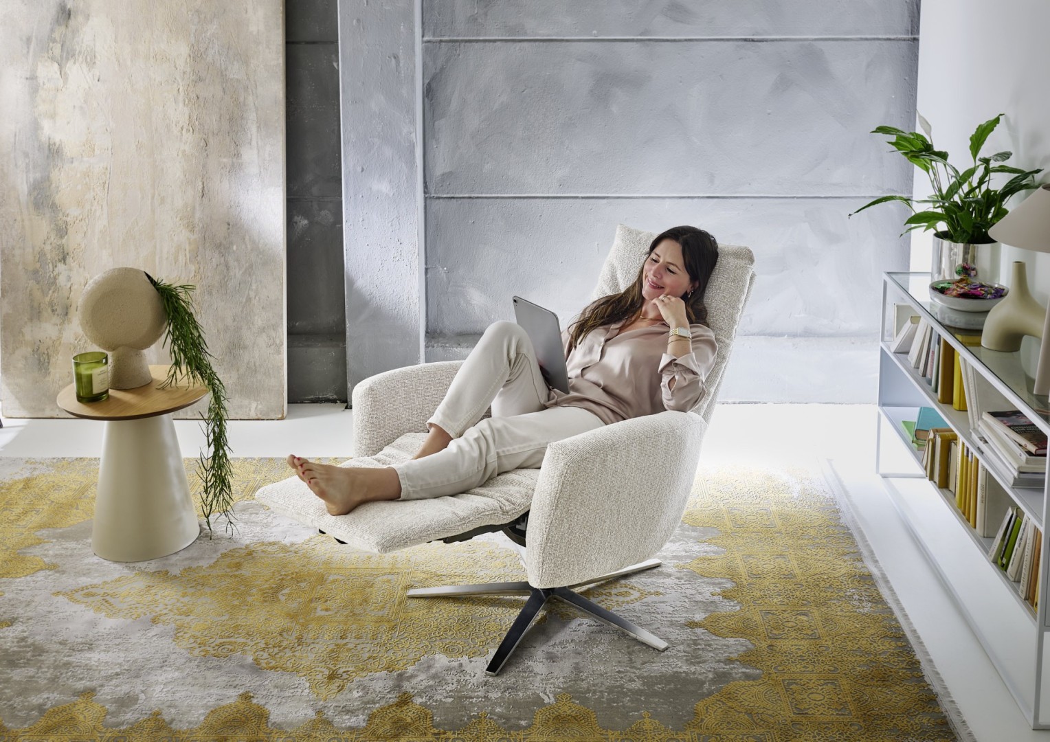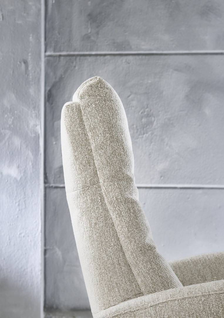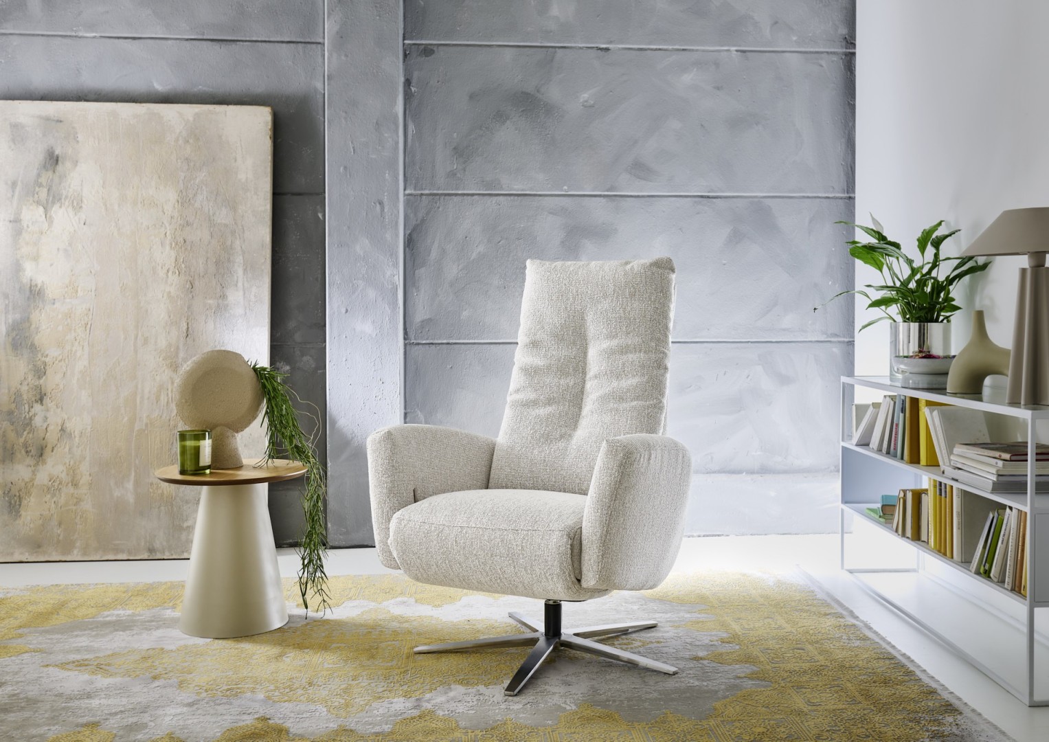 Otočné relaxačné kreslo s mäkkou, vysokou opierkou chrbta poskytuje príjemný komfort pri sedení aj oddychu. Vďaka funkcii polohovania s nastavením kardio polohy podporuje správnu polohu tela a uvoľnenie. Pohodlie poskytujú aj podrúčky na ruky. Jednoduchý, nadčasový dizajn podčiarkuje zvislé prešívanie chrbtovej opierky.