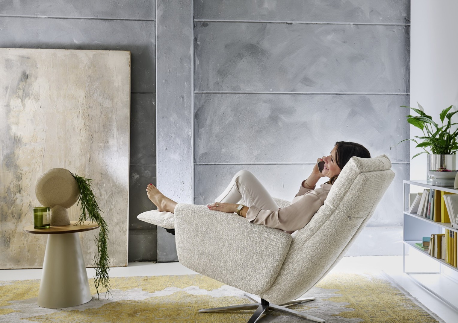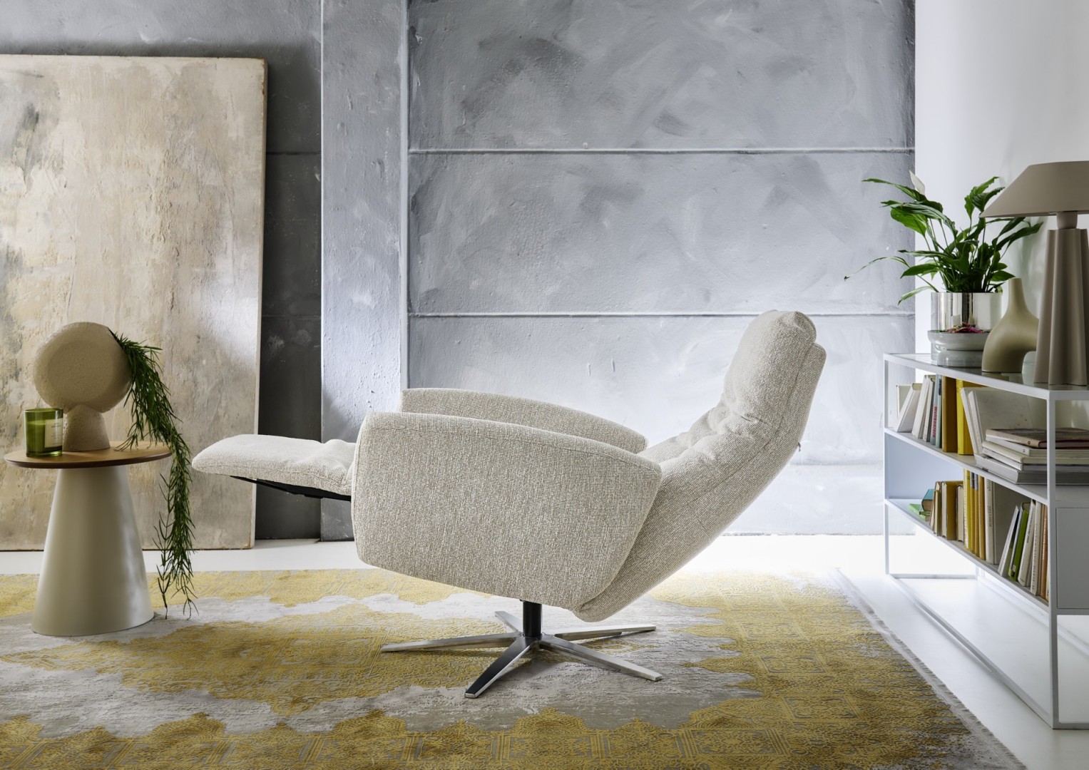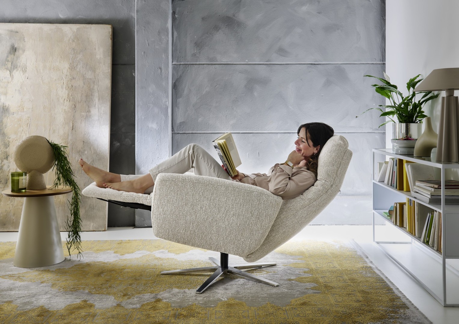 Otočné relaxačné kreslo s mäkkou, vysokou opierkou chrbta poskytuje príjemný komfort pri sedení aj oddychu. Vďaka funkcii polohovania s nastavením kardio polohy podporuje správnu polohu tela a uvoľnenie. Pohodlie poskytujú aj podrúčky na ruky. Jednoduchý, nadčasový dizajn podčiarkuje zvislé prešívanie chrbtovej opierky.