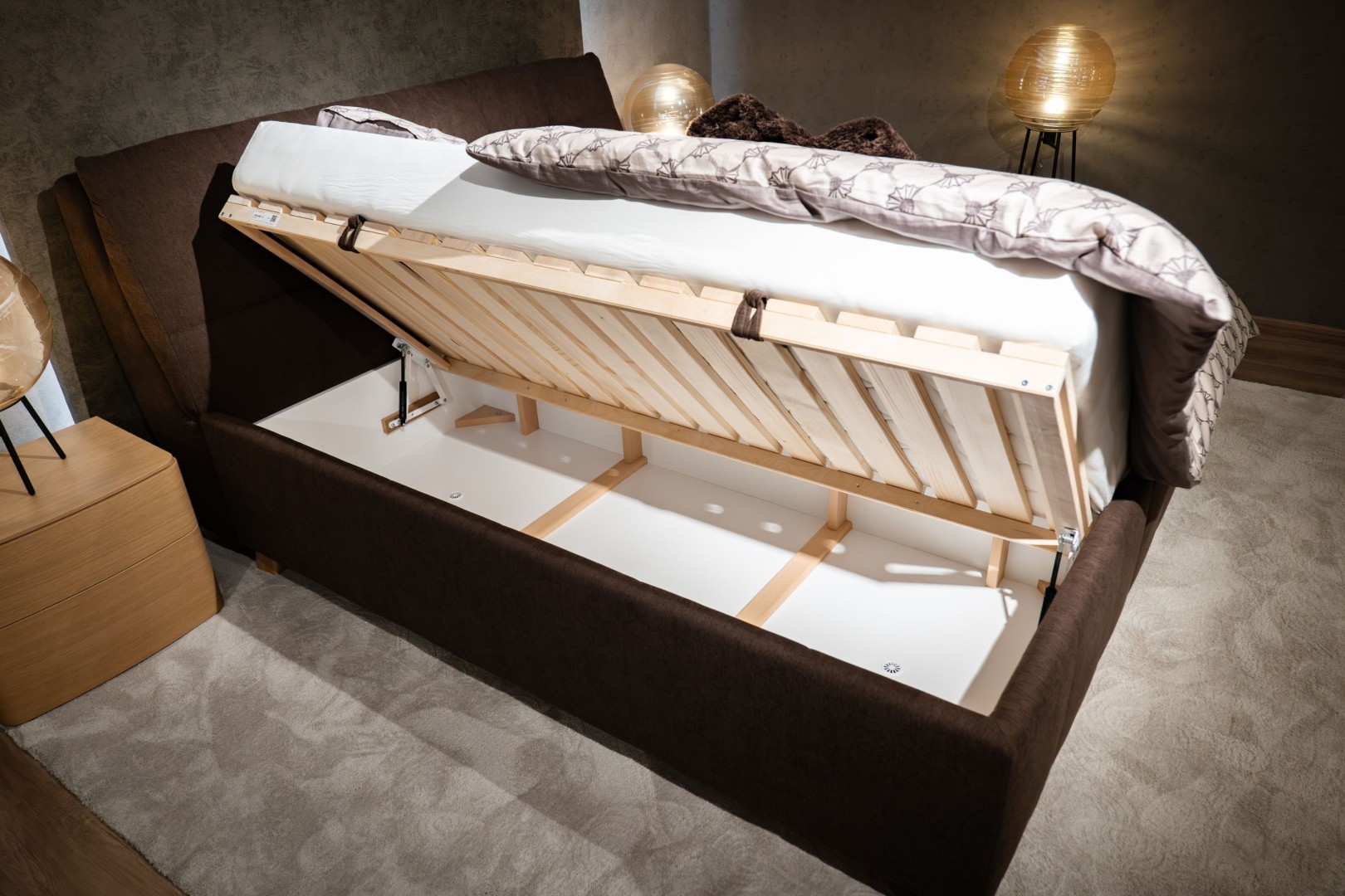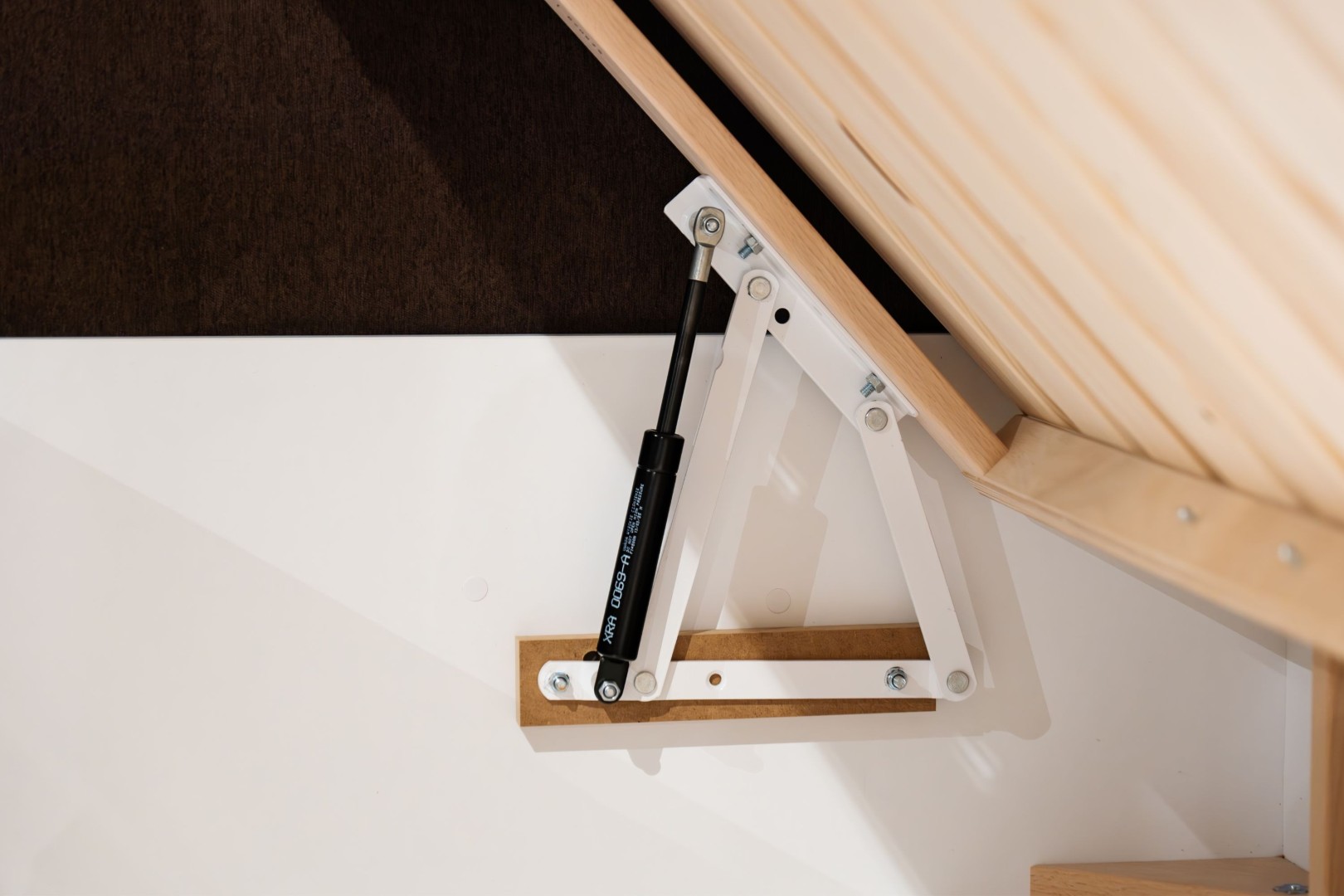 Praktický úložný priestor s kvalitným vyklápacím roštom ponúka dostatok miesta pre všetko, čo chcete mať po ruke, no zároveň skryté.