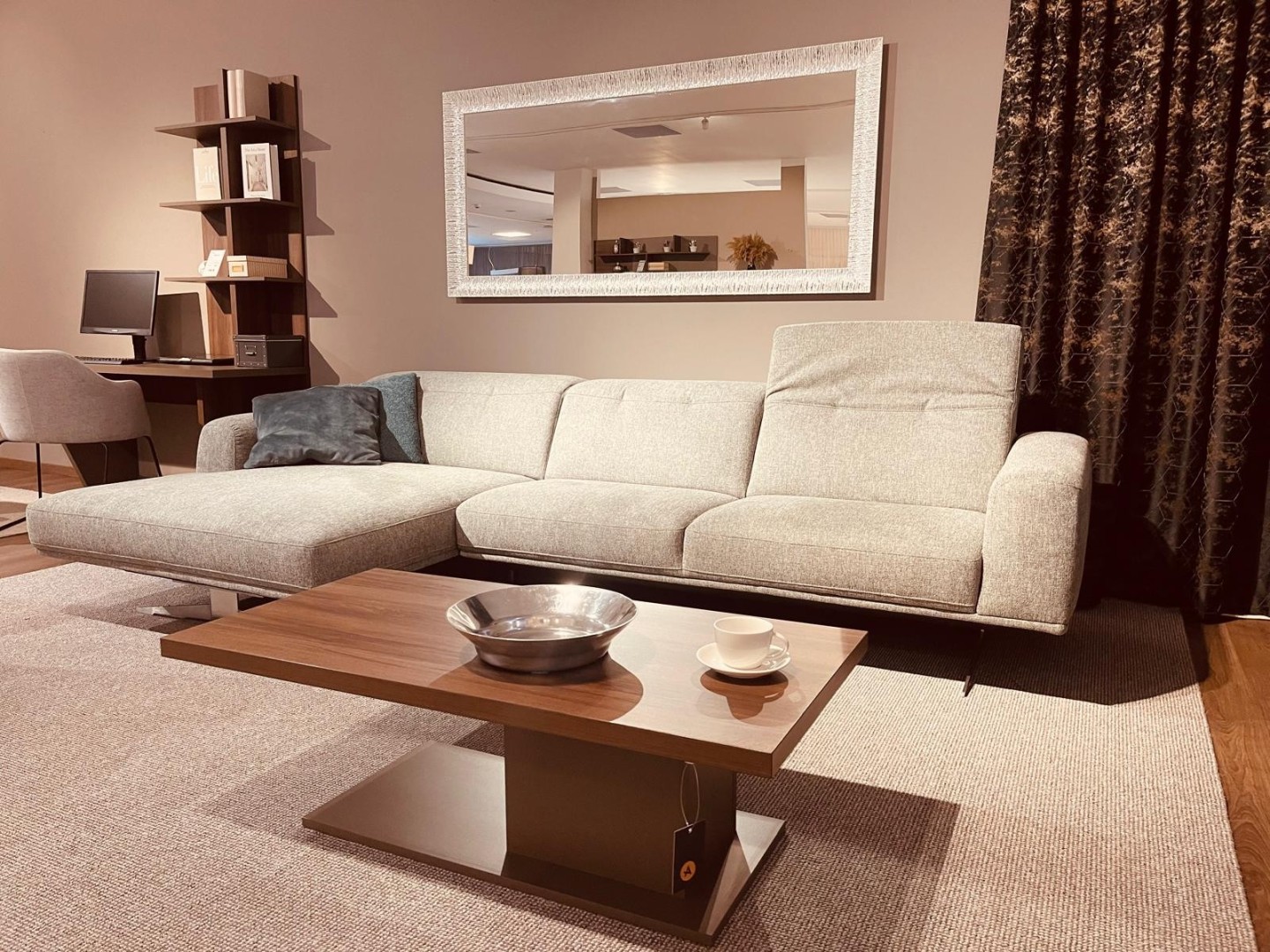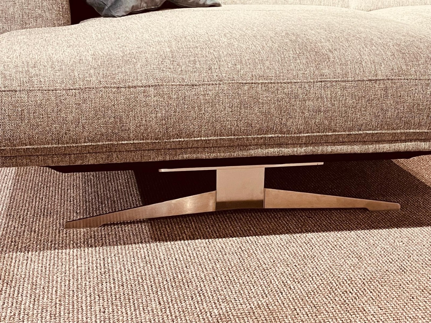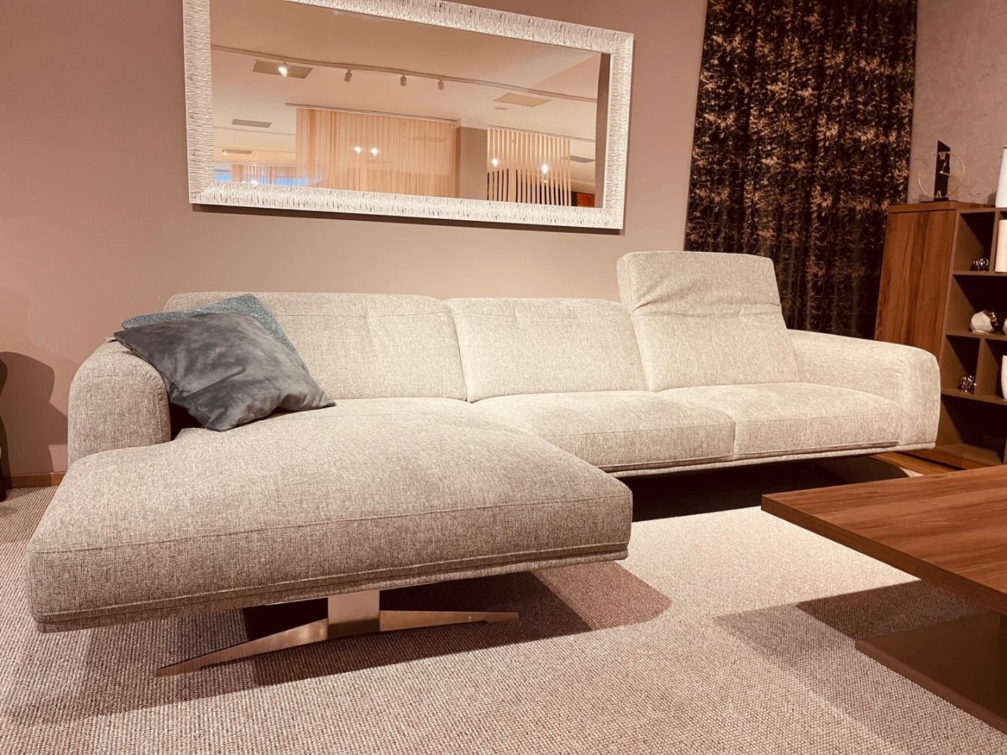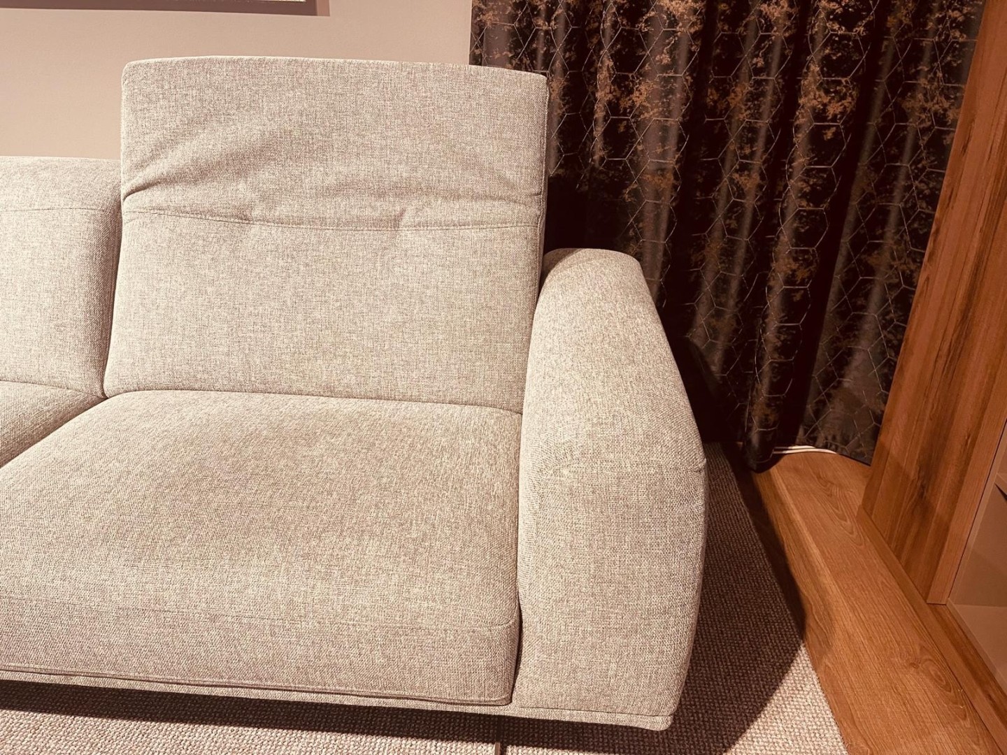 Rohová sedačka v sivej farbe so zelenkavým nádychom zaujme svojím elegantným dizajnom a nerezovou podnožou. Široká podrúčka poskytuje pohodlnú oporu pri sedení a nastaviteľné opierky hlavy sa prispôsobia vášmu komfortu.